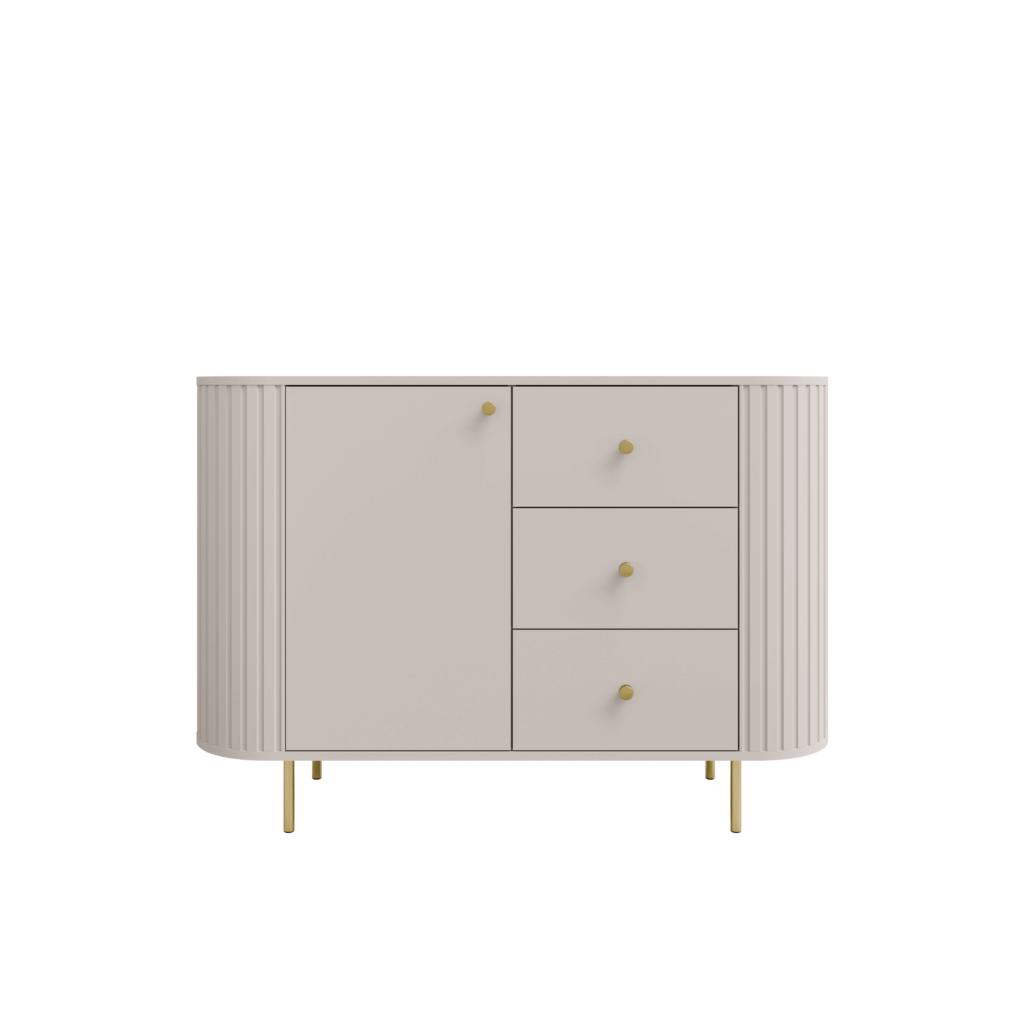 Komoda Ovalio beż piaskowy – nowoczesny design i trzy szafki