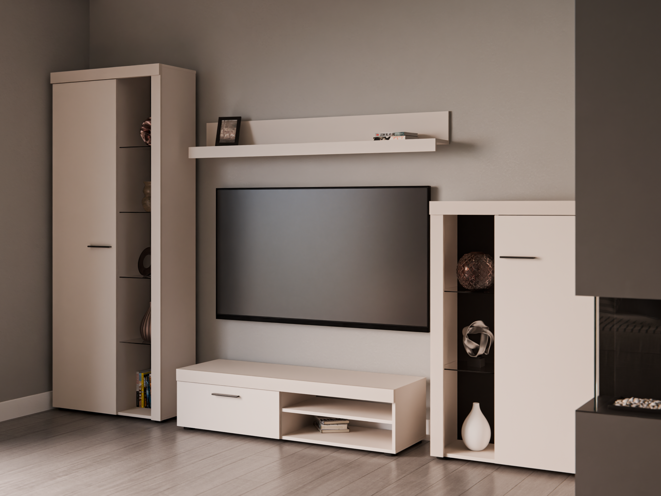 Meblościanka Rumba beż piaskowy to idealne rozwiązanie dla tych, którzy chcą stworzyć uporządkowaną, harmonijną i nowoczesną przestrzeń. To mebel, który łączy estetykę z praktycznością, podnosząc komfort użytkowania na co dzień.