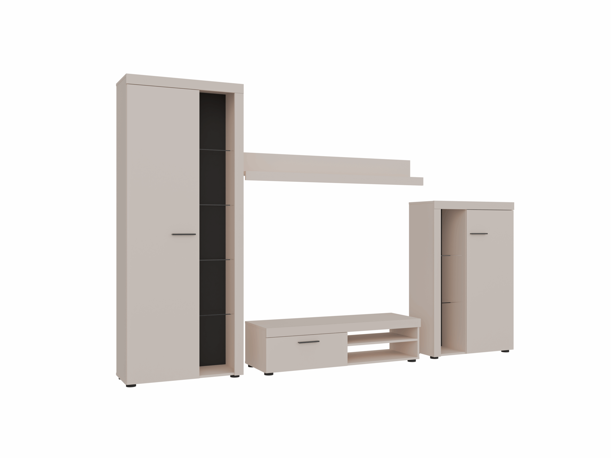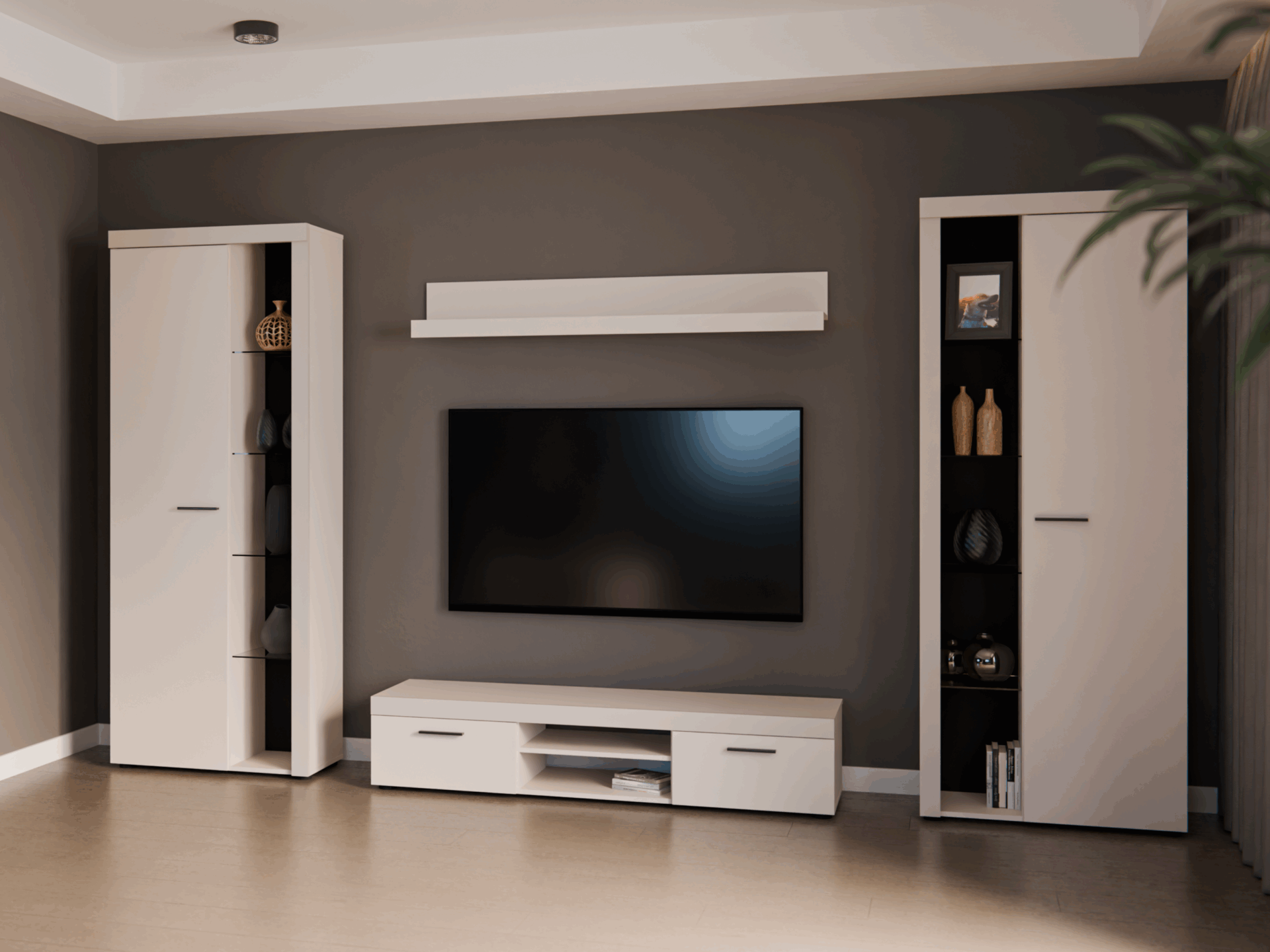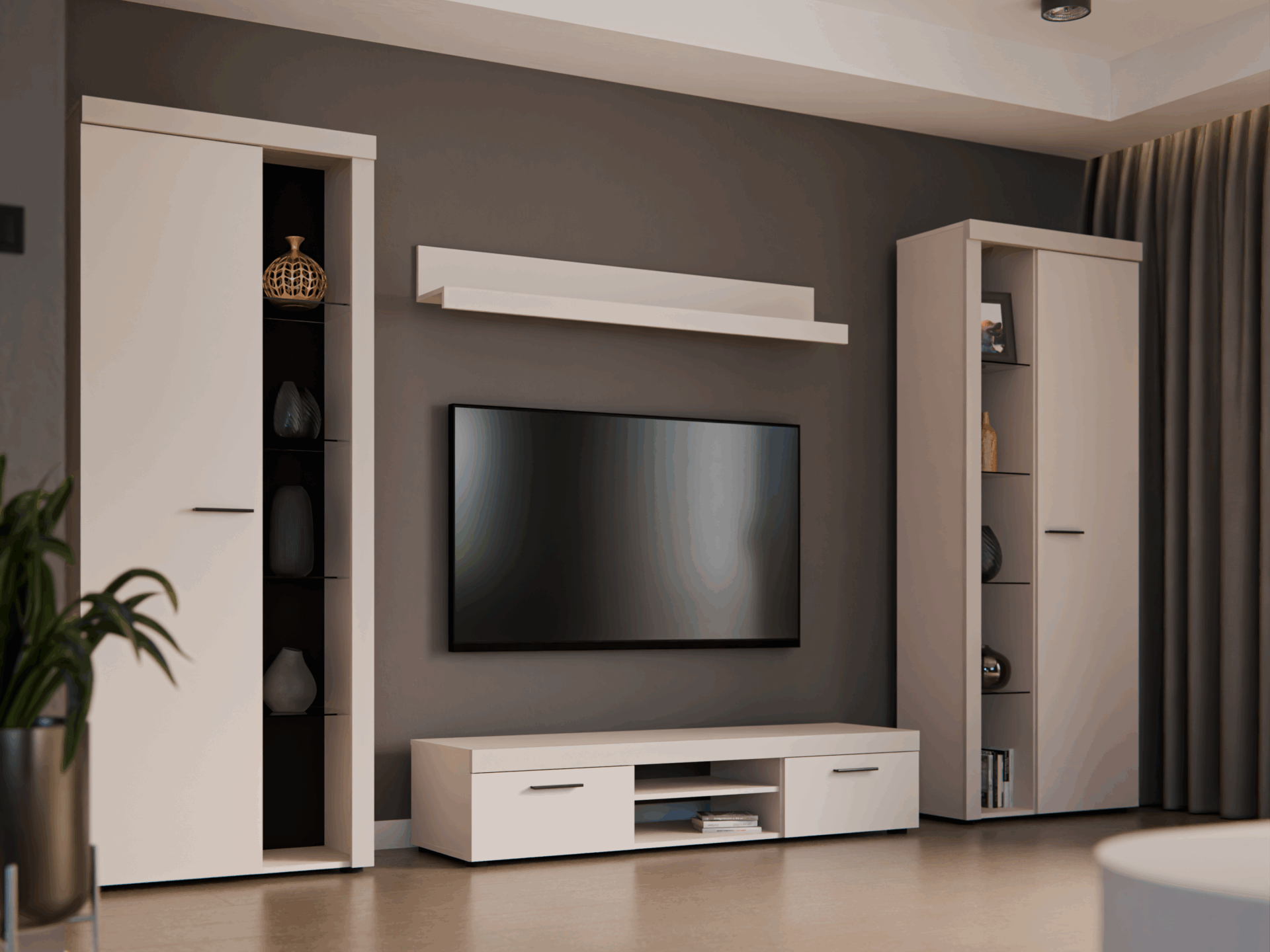 Poznaj meblościankę Rumba XL w kolorze beż piaskowy – praktyczne i eleganckie rozwiązanie do salonu, które łączy nowoczesny design z dużą pojemnością. Neutralny odcień beżu piaskowego rozjaśnia przestrzeń, nadając wnętrzu przytulności i harmonii, jednocześnie optycznie je powiększając.