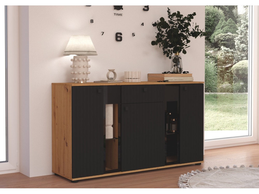 Komoda Salsa trzydrzwiowa z szufladą czarny/dąb artisan