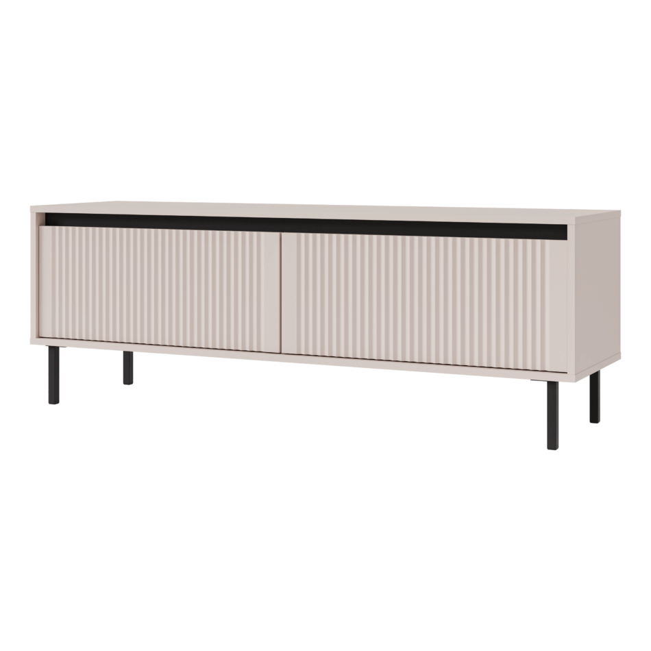 Szafka RTV Osaka w kolorze beż piaskowy to funkcjonalny i stylowy mebel, który doskonale uzupełni nowoczesną aranżację salonu. Jasny, neutralny odcień beżu wprowadza do wnętrza lekkość i harmonię, a dekoracyjne lamele na frontach szuflad nadają całości eleganckiego i wyrazistego charakteru.
