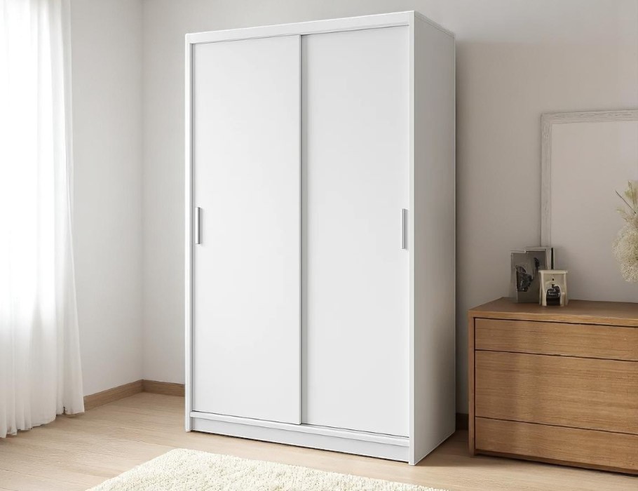 Szafa wykonana jest z trwałej płyty laminowanej 16 mm z odporną okleiną ABS, co zapewnia solidność i długowieczność. System drzwi przesuwnych opiera się na aluminiowych prowadnicach oraz rolkowych łożyskach, gwarantując płynne i ciche użytkowanie nawet przy intensywnym otwieraniu.