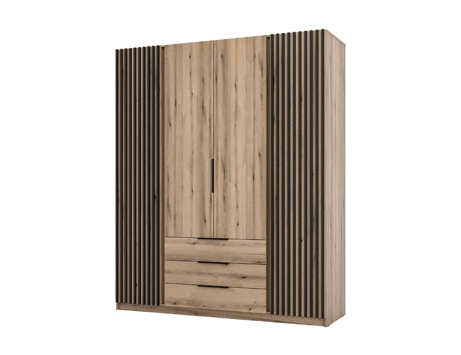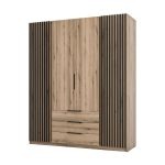 Szafa Kaja 200 cm z szufladami dąb evoke z czarnymi lamelami