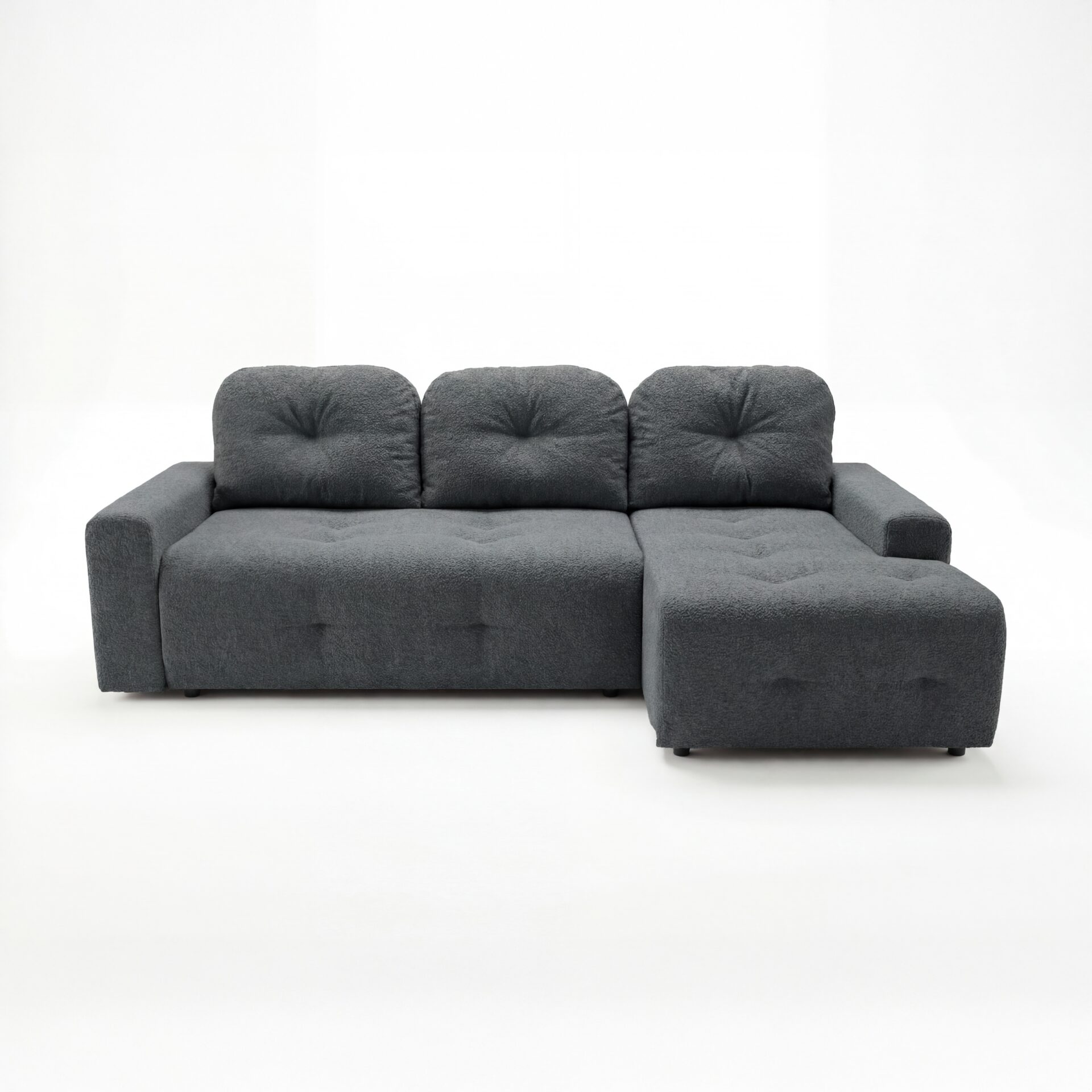 Narożnik Nubo wyróżnia się stylowymi detalami. Miękkie poduszki oparciowe oraz głębokie pikowania na siedzisku nadają mu unikalnego charakteru, idealnie wpisując się w aranżacje nowoczesne, japandi i klasyczne.