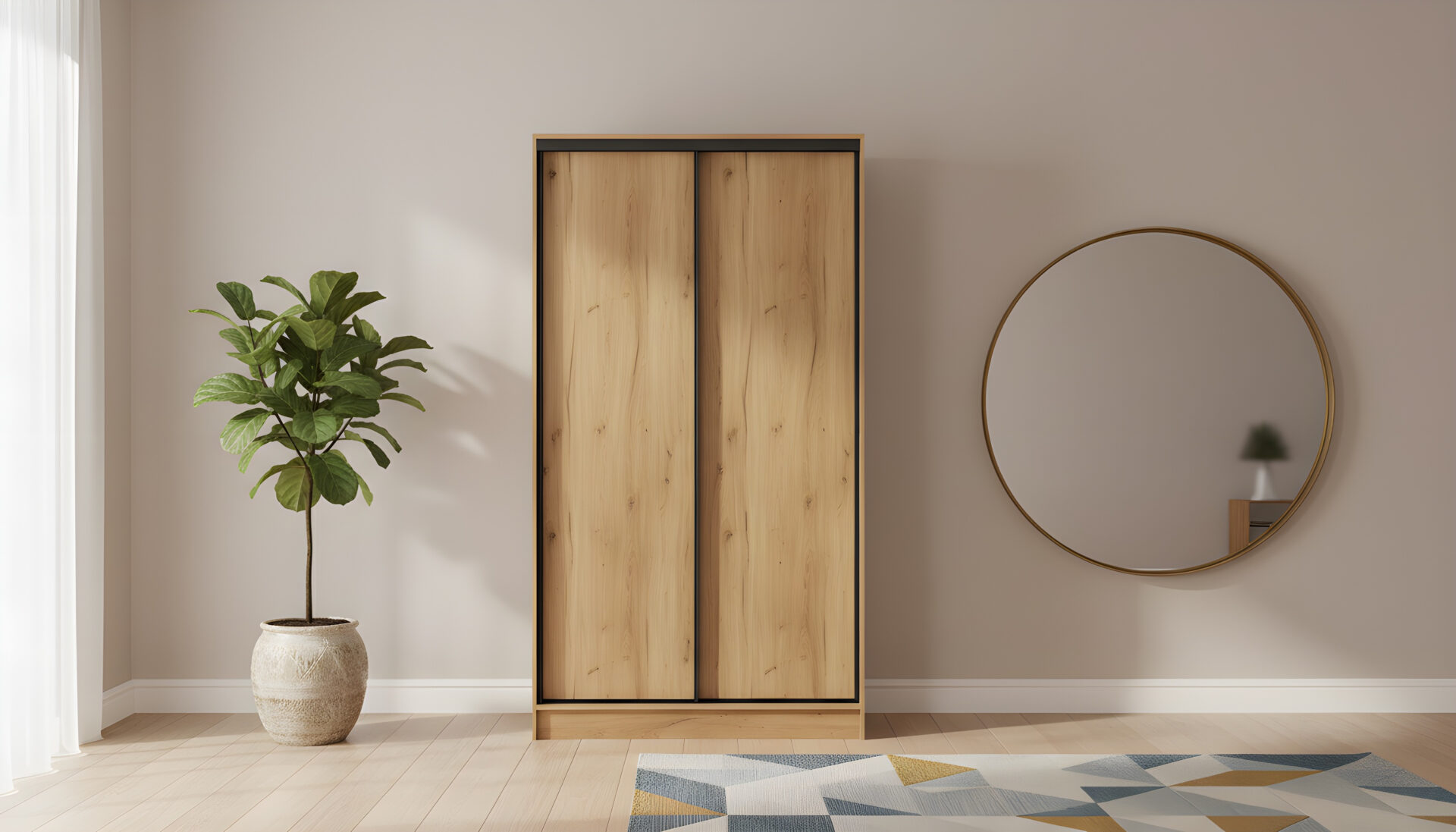 Ta kompaktowa szafa to doskonały wybór dla każdego, kto poszukuje funkcjonalnego i estetycznego mebla, który idealnie wpasuje się w nowoczesne aranżacje wnętrz. Dzięki swojemu praktycznemu rozmiarowi i przemyślanemu projektowi, szafa sprawdzi się zarówno w mniejszych mieszkaniach, jak i większych domach, dodając przestrzeni niepowtarzalnego charakteru.
