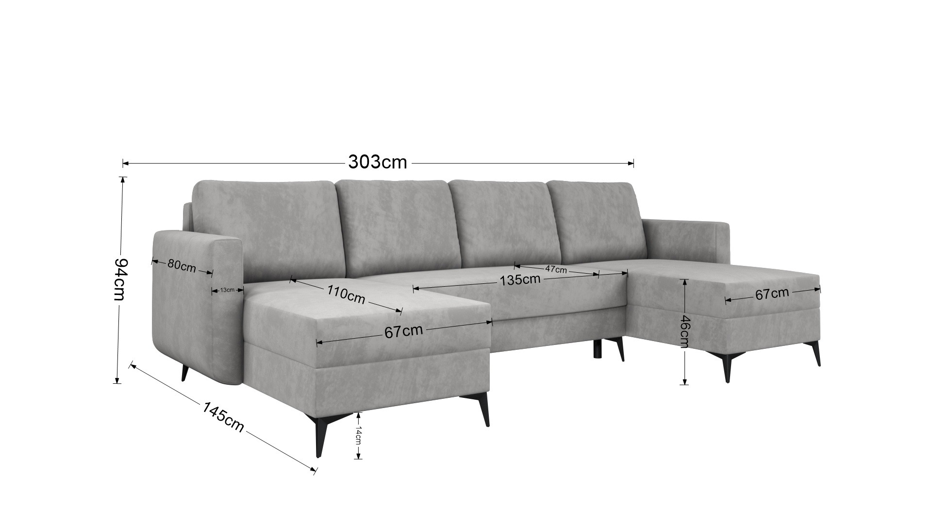 Siedzisko oraz oparcie wypełniono sprężynami bonellowymi i elastyczną pianką. Taka konstrukcja zapewnia stabilne podparcie podczas codziennego wypoczynku. W zestawie znajdują się cztery duże poduszki oparciowe. Zapewniają one dodatkowy komfort w trakcie wieczornego relaksu z książką lub filmem. Z kolei uniwersalna budowa pozwala na dowolny montaż strony lewej lub prawej. W ten sposób dopasujesz go idealnie do układu swojego salonu.
