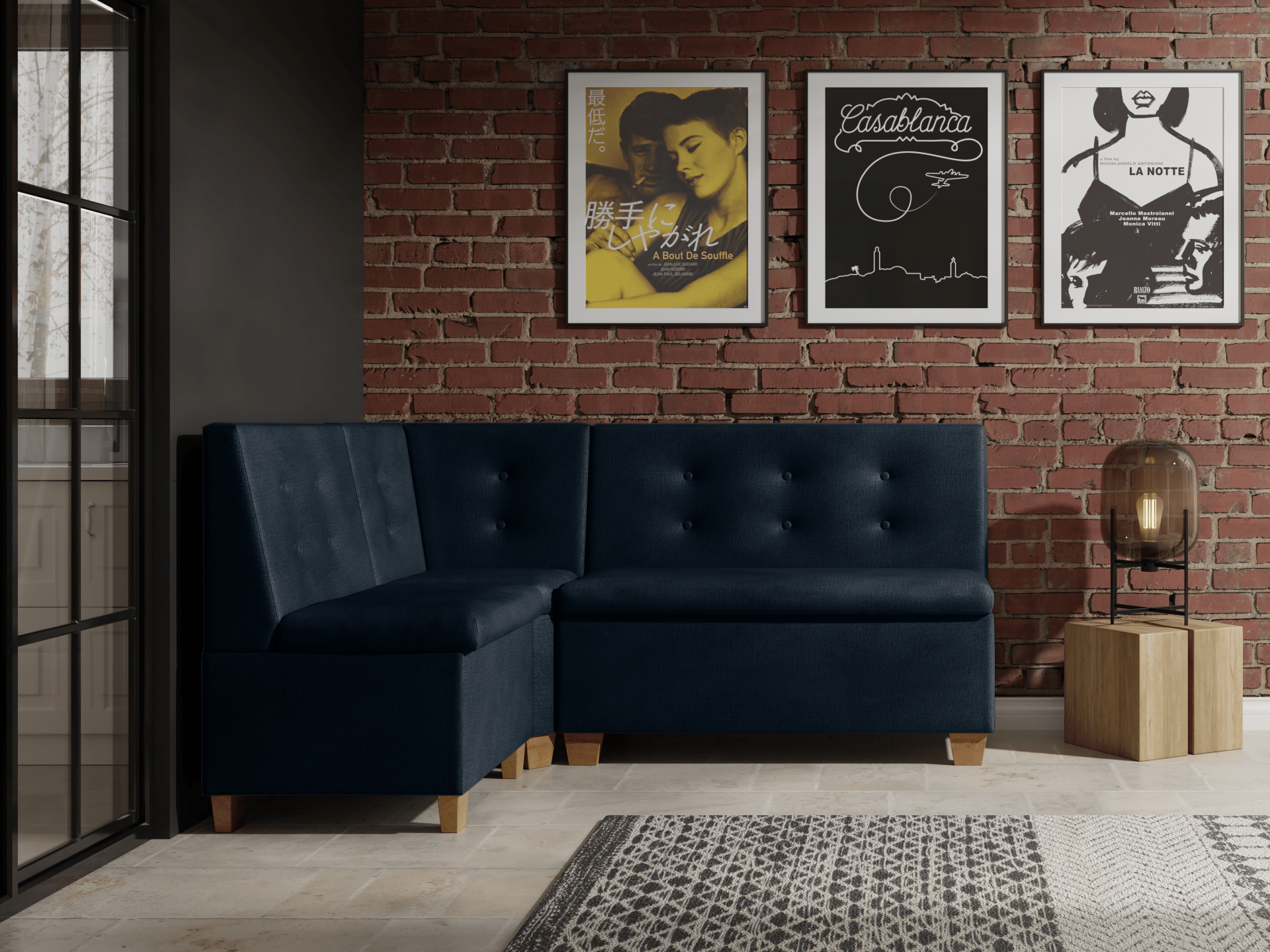 Praktyczne schowki pod siedziskiem pomogą Ci zorganizować miejsce na drobiazgi lub tekstylia kuchenne. Wysokiej jakości pianka T30 gwarantuje komfort siedzenia i trwałość na lata. Barcelona to mebel wolnostojący — tył został starannie obity tkaniną, co pozwala ustawić go w dowolnym miejscu kuchni czy jadalni.
