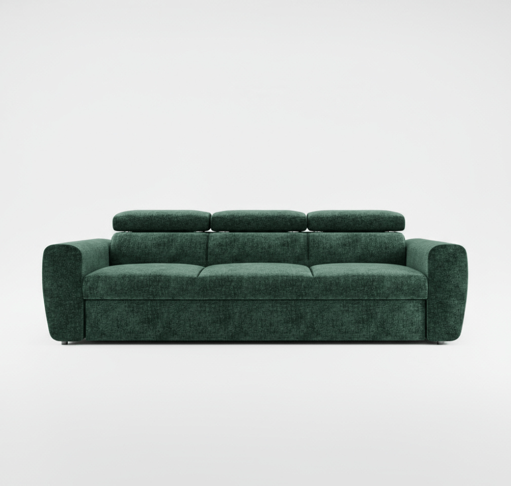 Kanapa z funkcją spania Napoli z regulowanymi zagłówkami zielony szenil