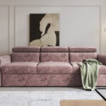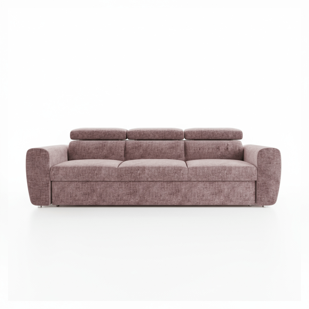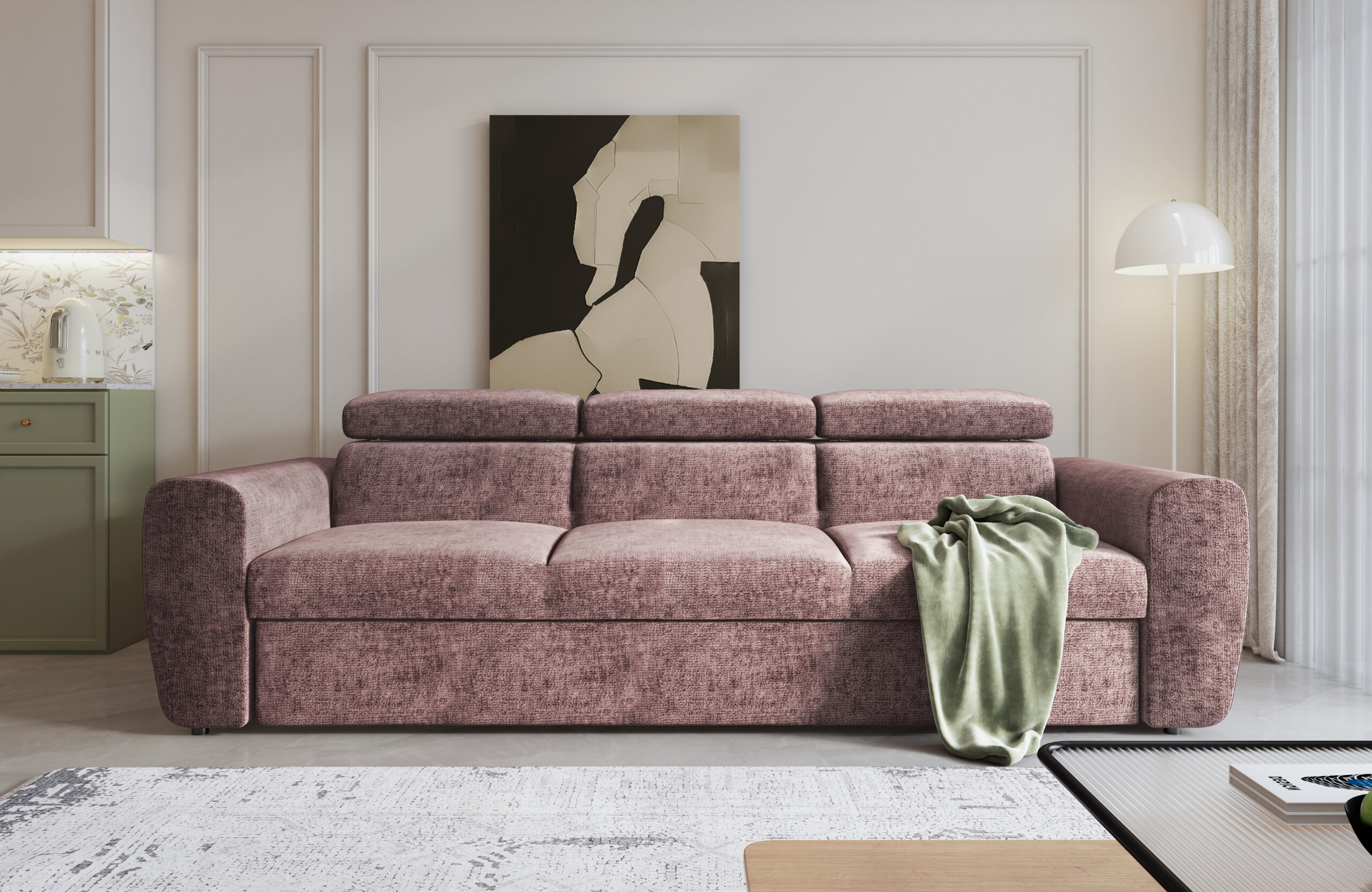 Kanapa z funkcją spania Napoli z regulowanymi zagłówkami różowy szenil