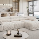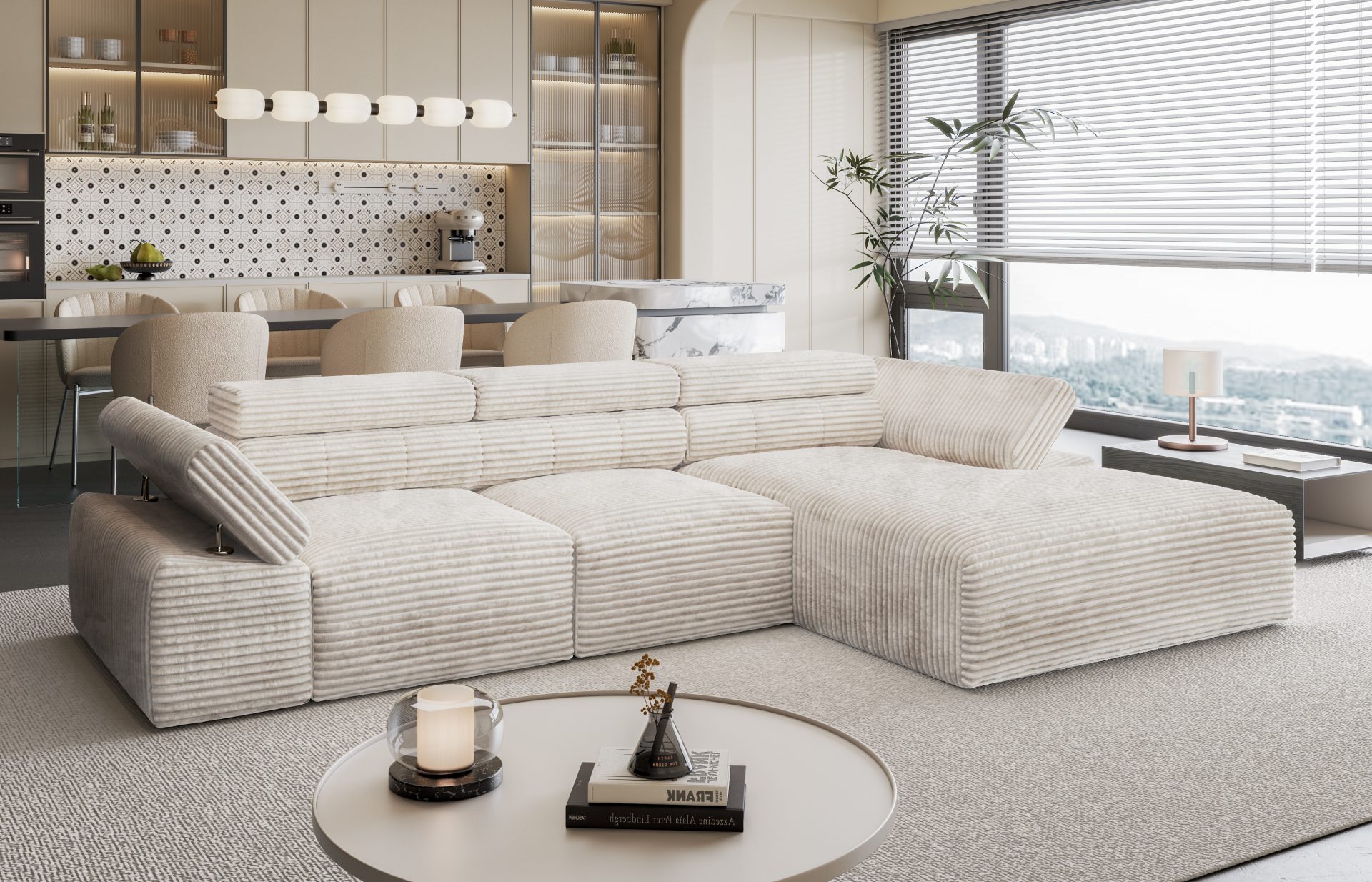 Kremowy narożnik Stilio staje się sercem domowego życia. Wprowadza do salonu przytulność, przemieniając każdą chwilę relaksu w wyjątkowe doświadczenie.