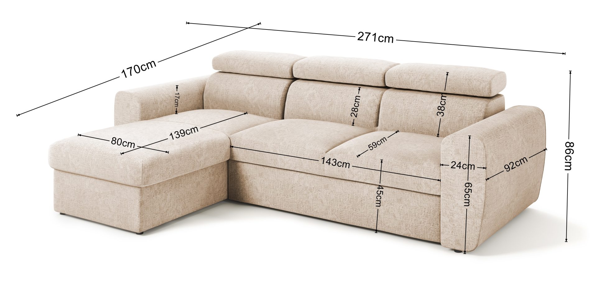 Wymiary kanapy Napoli: