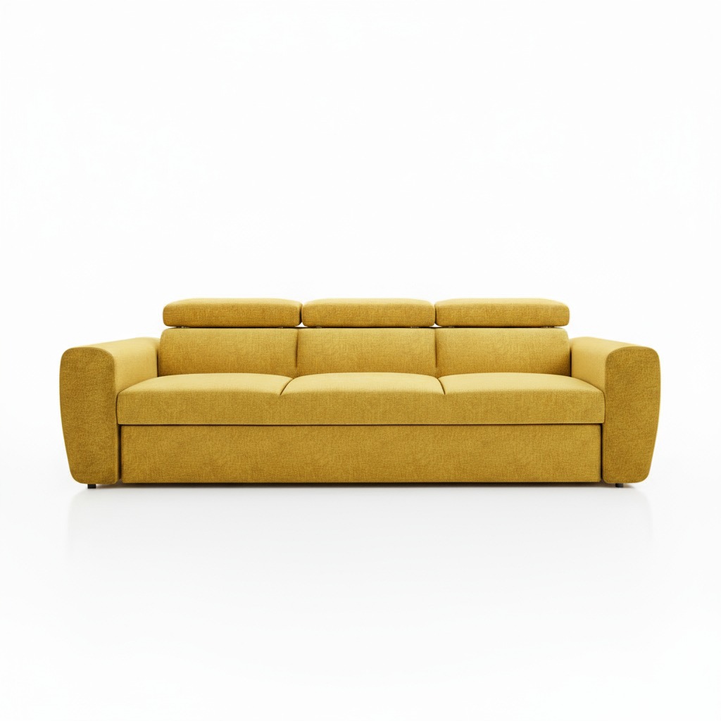 Kanapa z funkcją spania Napoli z regulowanymi zagłówkami żółty szenil