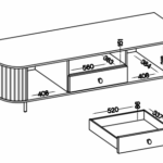 otwartą półkę na dekoracje lub sprzęt multimedialny – umożliwia estetyczną ekspozycję przedmiotów i łatwy dostęp do elektroniki.