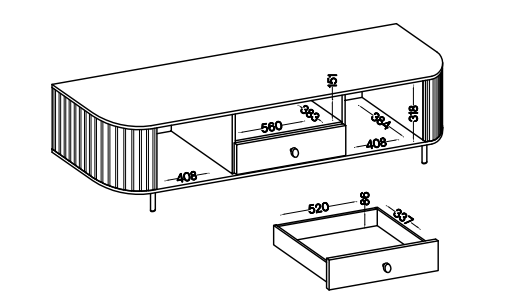Szafka RTV Ovalio została zaprojektowana z myślą o praktycznym użytkowaniu i uporządkowanej przestrzeni. Wyposażona jest w: