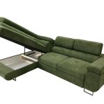 Komfort codziennego wypoczynku zapewniają siedziska wypełnione sprężynami falistymi oraz elastyczną pianką. Dzięki temu są wygodne i odporne na odkształcenia. Regulowane zagłówki pozwalają z kolei dopasować wysokość oparcia do indywidualnych potrzeb. W ten sposób można wygodnie oprzeć głowę podczas czytania książki lub wieczornego seansu filmowego. Narożnik wyposażono także w intuicyjną funkcję spania. Rozkładanie za pomocą automatu Delfin jest szybkie i nie wymaga wysiłku. Pod siedziskiem znajduje się duży pojemnik na pościel lub dodatkowe koce.