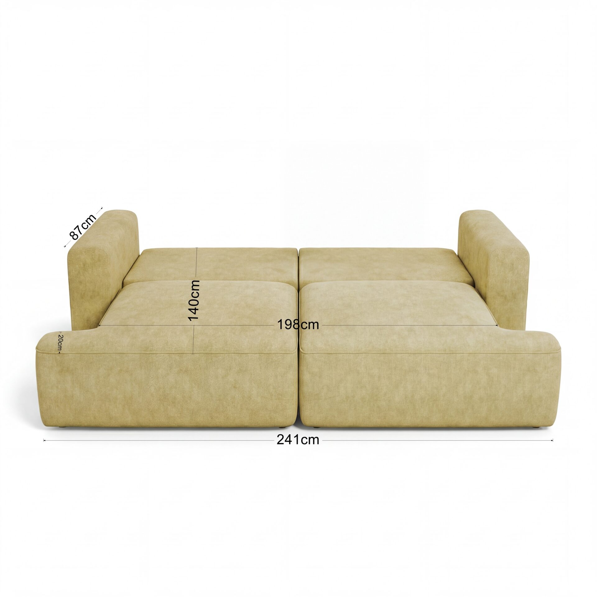 Obicie kanapy wykonano z tkaniny Cloud – przyjemnego w dotyku weluru, który wyróżnia się eleganckim, matowym wykończeniem i subtelną melanżową barwą. To materiał nie tylko piękny, ale również praktyczny – łatwoczyszczący, hydrofobowy oraz odporny na ścieranie, dzięki czemu kanapa długo zachowuje swój atrakcyjny wygląd.
