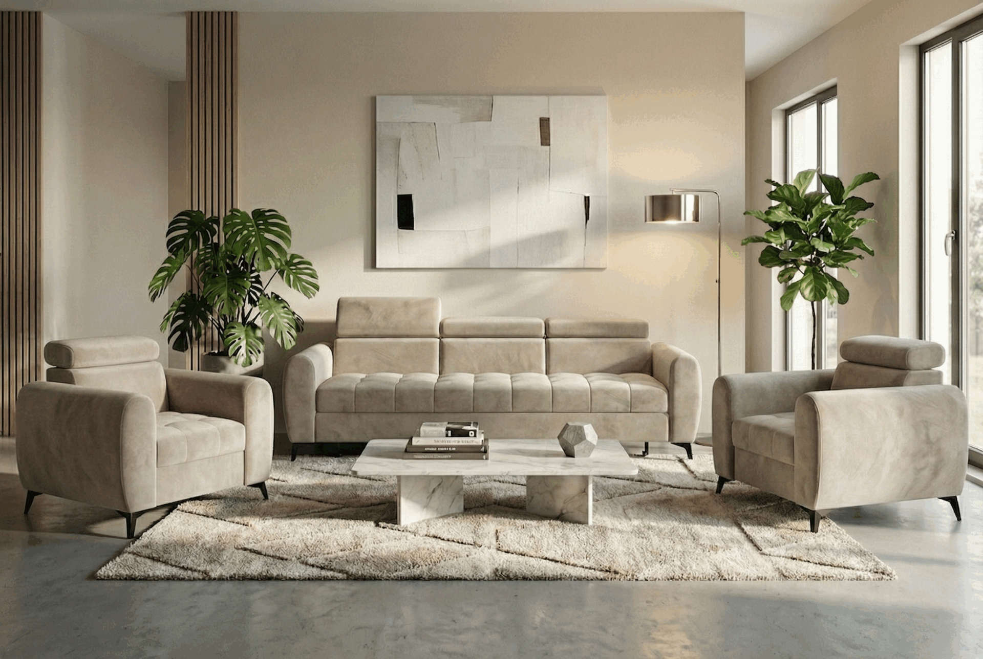 Komplet mebli Bjorn – kanapa i 2 fotele w eleganckim stylu