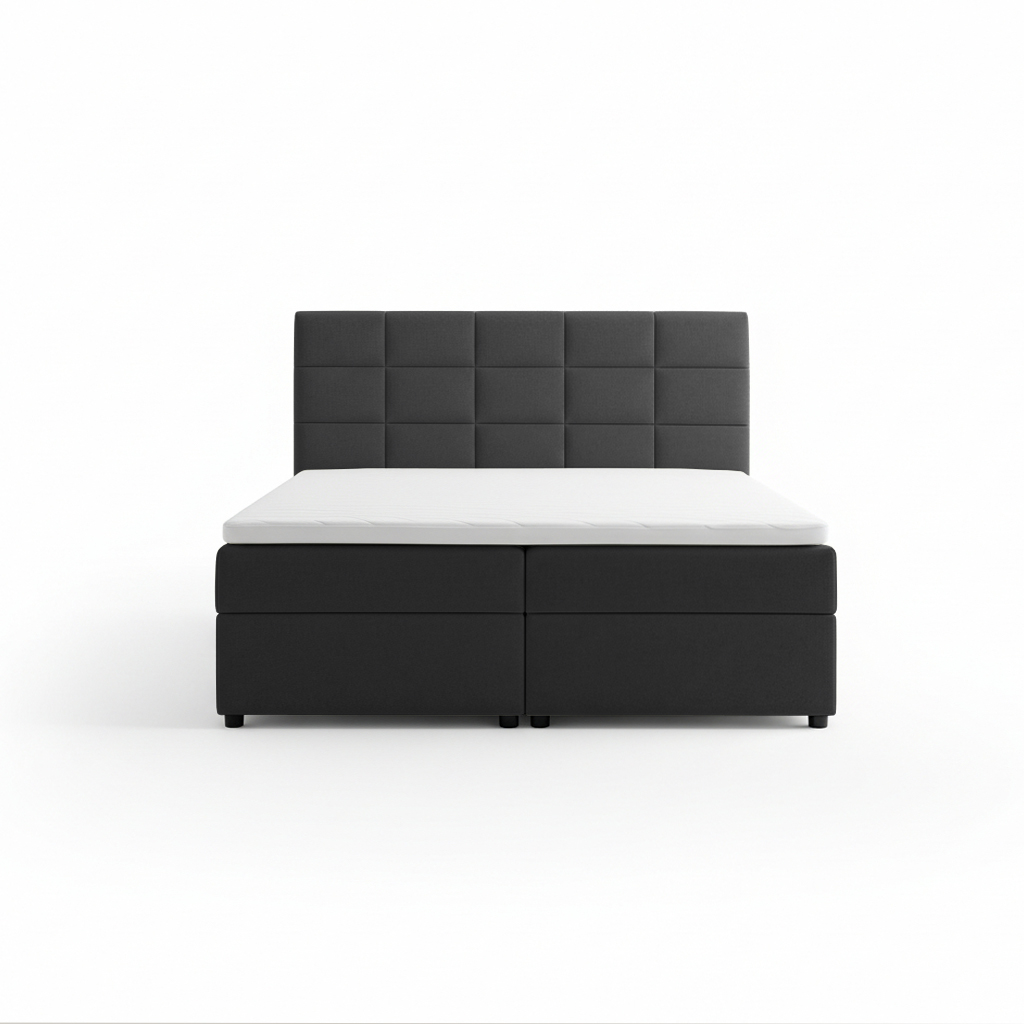 Łóżko kontynentalne Eris 160×200 – podwójne łóżko tapicerowane z pojemnikiem i topperem