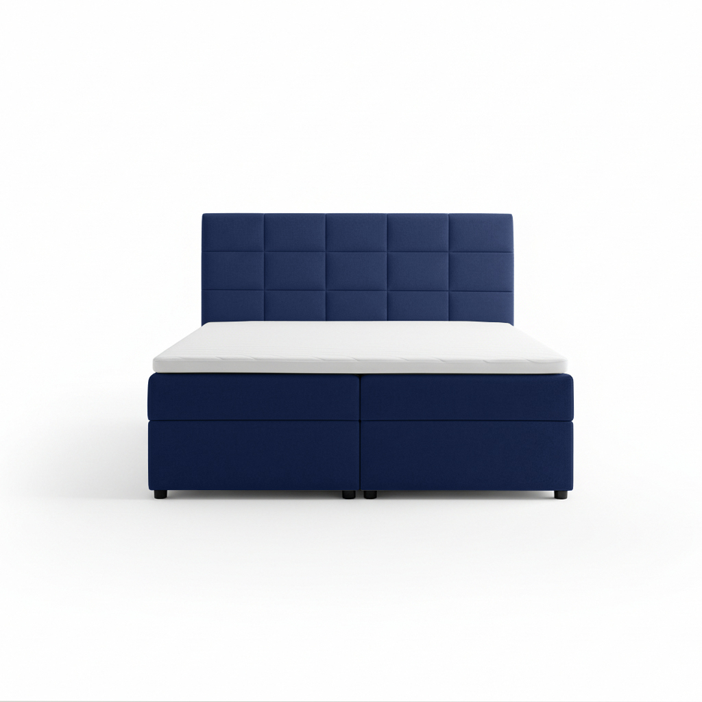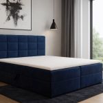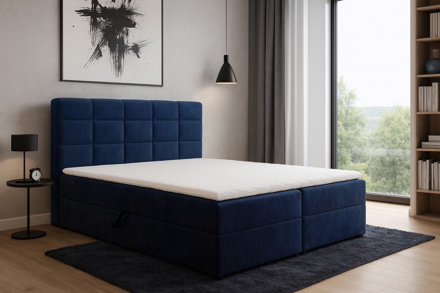 Łóżko kontynentalne Eris z pojemnikami na pościel granatowy welur