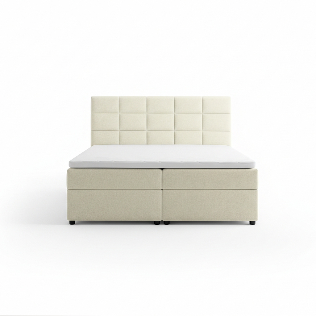 Łóżko kontynentalne Eris z pojemnikami na pościel kremowy welur