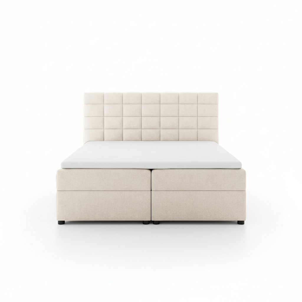 Łóżko kontynentalne Mio z tapicerowanym zagłówkiem kremowy welur