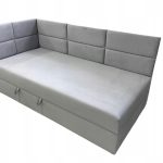 Łóżko zostało wyposażone w pojemny schowek na pościel, który ułatwia organizację przestrzeni. To świetne rozwiązanie, które pozwala zaoszczędzić miejsce w szafie i utrzymać porządek w pokoju dziecka lub gościnnej sypialni.