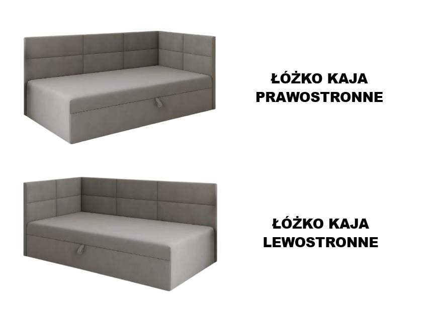 Model Kaja daje możliwość wyboru strony łóżka – lewej lub prawej, dzięki czemu bez problemu dopasujesz go do układu swojego wnętrza. To szczególnie ważne przy aranżacji małych pomieszczeń i funkcjonalnych stref snu.