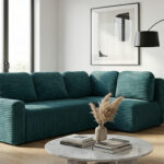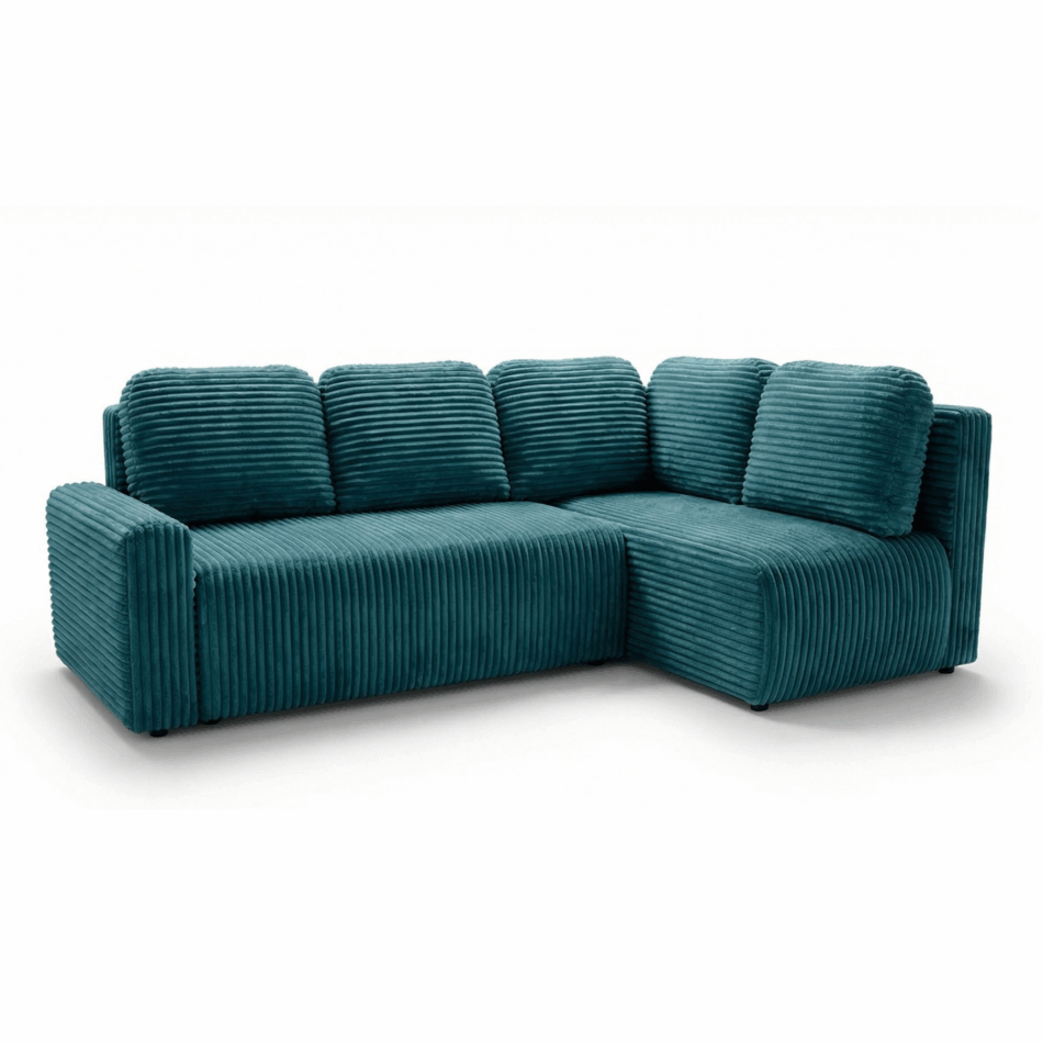 Narożnik z funkcją spania Nesso L prawy z pojemnikiem na pościel turkusowy sztruks