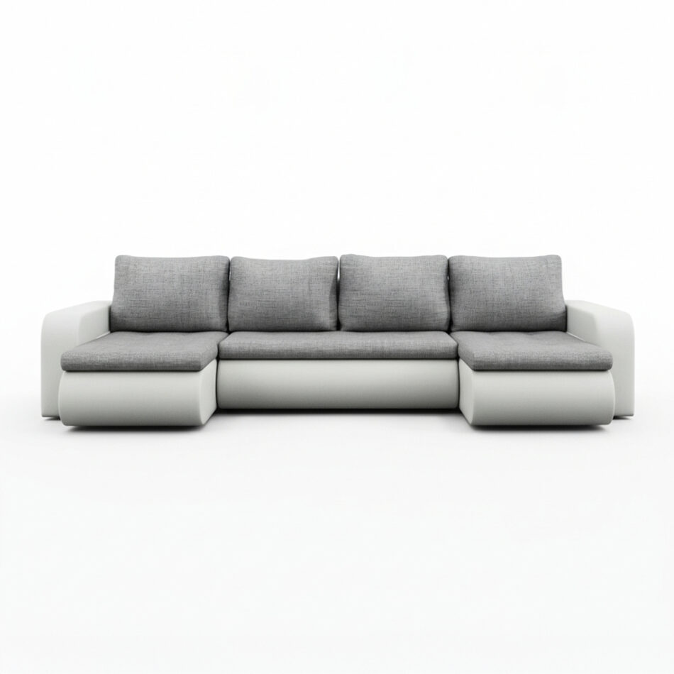Jego nowoczesna bryła w kształcie litery U tworzy idealne centrum każdego przestronnego salonu.