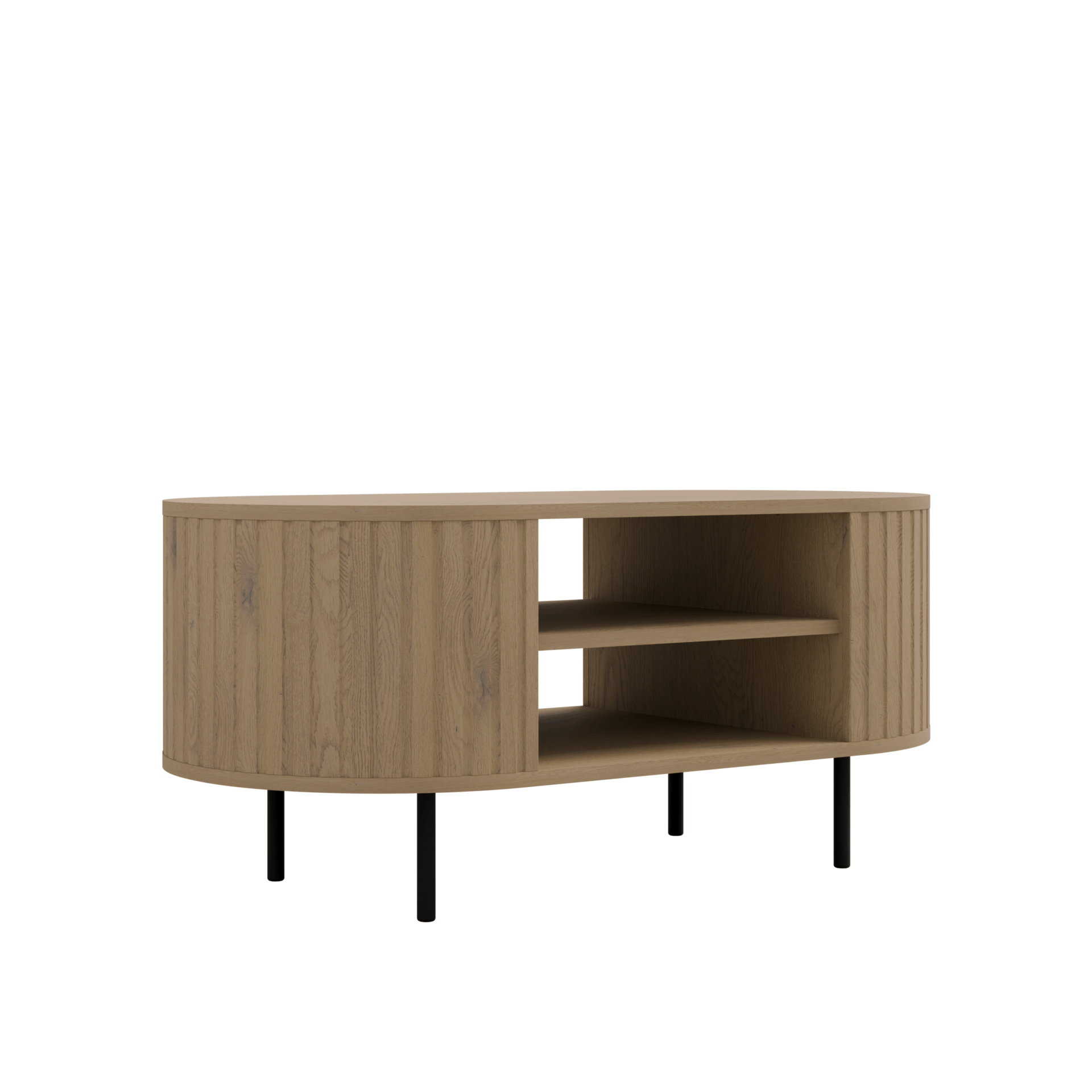 Szafka RTV Ovalio dąb Cremona – nowoczesny design, czarne nóżki i praktyczna szafka