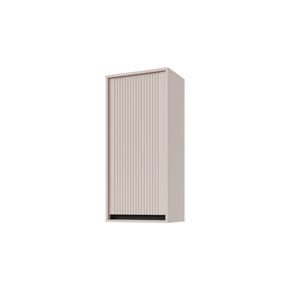 Wisząca szafka Osaka w kolorze beż piaskowy to elegancki i praktyczny mebel, który doskonale sprawdzi się w nowoczesnym salonie, sypialni czy gabinecie. Jasny, neutralny odcień beżu wprowadza do wnętrza lekkość i harmonię, a dekoracyjne lamele na frontach nadają całości elegancki i nowoczesny charakter.